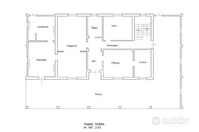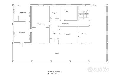 In aggiunta troviamo un locale ad uso ripostiglio e la lavanderia, al quale è possibile accedere sia dal soggiorno sia dal portico esterno di proprietà.