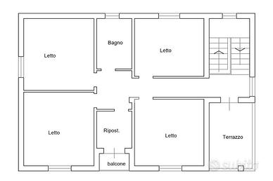 L'ingresso si apre sul vano scala che ci porta al primo piano. Al piano troviamo soggiorno e cucina separati, due camere da letto matrimoniali, il bagno ed un locale uso ripostiglio.