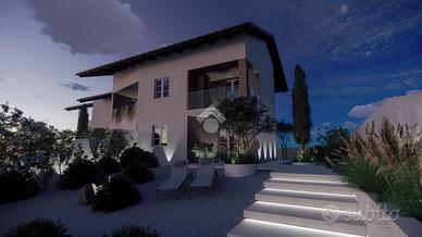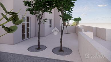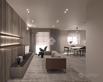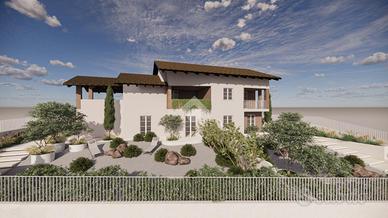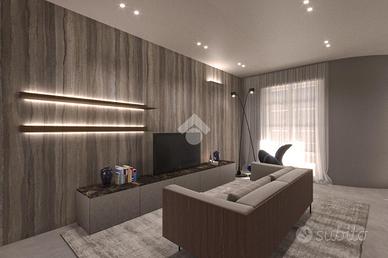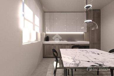 Al piano terreno l'ingresso si apre sulla zona giorno: un living di circa 30 mq in cui soggiorno e cucina sono uniti in un unico ambiente. A servizio del piano è presente un ampio bagno finestrato con pratico antibagno. Questo piano dispone di ampie aperture che rendono luminosi i locali e che consentono l'uscita sull'area esterna.