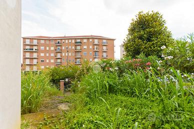 L'ingresso al piano terreno è su un ampio living con cucina a vista. La zona giorno di circa 35 mq dispone di diverse aperture che conferiscono particolare luminosità all'ambiente oltre alla possibilità di accedere direttamente al giardino privato che circonda la casa.