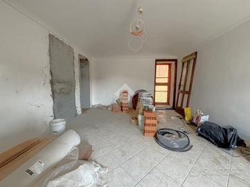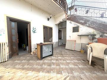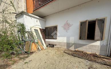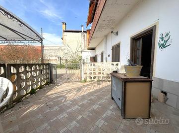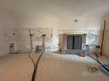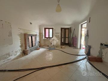 Entrando, vi è cortile in comune con proprietaria del piano superiore ,i box auto e piccolo dehor esterno. L'ingresso da su una prima stanza , sulla sinistra soggiorno ampio con camino in mattoni, altre due ulteriori stanze e bagno. Completano la soluzione il cortile sul retro e un terreno che è annesso alla proprietà.