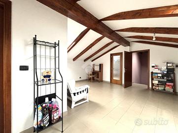 Nel comune di Chivasso, nella tranquilla località di Torassi, è disponibile una PORZIONE di bifamiliare signorile in vendita. L'immobile, che si estende su una superficie di 250 mq, è stato ricostruito a nuovo nel 2002 e ristrutturato internamente nel 2015, garantendo comfort e modernità. Distribuito su due livelli, offre ampi spazi abitativi e una disposizione funzionale. L'immobile ha l'ingresso indipendente e si dispone su due livelli: al primo piano ed al secondo piano mansardato. Gli infissi sono in legno con doppio vetro. La proprietà è libera su tre lati, assicurando una tripla esposizione che dona luminosità agli ambienti interni. La mansarda è abitabile, ideale per momenti conviviali. L'immobile è dotato di pannelli solari, che contribuiscono all'efficienza energetica, e di un sistema di riscaldamento termoautonomo. Completa la proprietà una tettoia, offrendo comode soluzioni per il parcheggio e lo stoccaggio. Il piano mansardato è dotato di split per l'aria condizionata. Possibilità di acquisto totale con altro