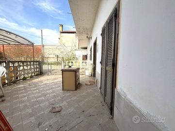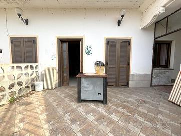 Entrando, vi è cortile in comune con proprietaria del piano superiore ,i box auto e piccolo dehor esterno. L'ingresso da su una prima stanza , sulla sinistra soggiorno ampio con camino in mattoni, altre due ulteriori stanze e bagno. Completano la soluzione il cortile sul retro e un terreno che è annesso alla proprietà.