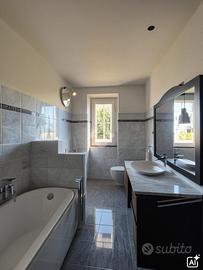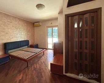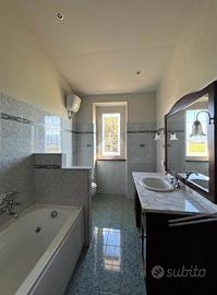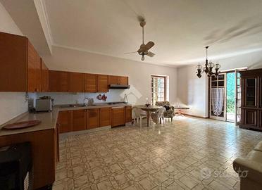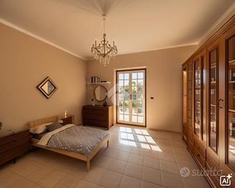 Al piano terra invece troviamo una grande sala da pranzo con angolo cottura, una camera matrimoniale, un bagno e un ripostiglio. Adiacente allo stabile del piano terra troviamo anche una stanza adibita a cucina dalla quale una rampa esterna ci conduce al garage.