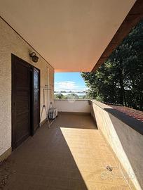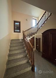 All'arrivo, un porticato ci introduce all'ingresso dove troviamo una comoda scala che ci accompagna al primo piano della soluzione composto da soggiorno con angolo cottura con uscita sul balcone, due camere matrimoniali di cui una con bagno finestrato con doccia e balcone privato, una cameretta ed un secondo bagno finestrato con vasca idromassaggio.
