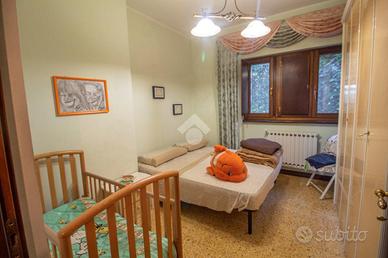 Nella tranquilla e riservata Frazione di Santa Rufina, in posizione rialzata e con piacevole apertura sul paesaggio circostante, proponiamo in vendita una soluzione bifamiliare elegante e accogliente, ideale per chi desidera vivere in un contesto sereno senza rinunciare a spazio e indipendenza. L'abitazione, di circa 197 mq, si sviluppa su due livelli e si distingue per la presenza di un doppio ingresso indipendente: quello carrabile accompagna comodamente al giardino privato e al garage, mentre l'ingresso pedonale garantisce riservatezza e praticità nella vita quotidiana. Al piano terra la casa accoglie con ambienti ampi e luminosi, pensati per essere vissuti appieno. La cucina, il salone e il soggiorno con camino dialogano armoniosamente tra loro, mentre la grande vetrata affacciata sul giardino crea una continuità naturale tra interno ed esterno, rendendo l'ambiente caldo e conviviale in ogni stagione. Sullo stesso livello trovano spazio anche un bagno con vasca e un comodo ripostiglio. Salendo al piano superiore, tramite scala a chiocciola, si accede alla zona notte, pensata per garantire comfort e privacy. Qui, prima di accedere alla camera padronale, troviamo un'ampia stanza attualmente adibita a studio, ideale come zona lavoro, angolo lettura o spazio multifunzionale. La camera padronale, impreziosita dal camino, gode di accesso diretto all'ampio terrazzo, perfetto per momenti di relax all'aperto. Completano il piano due camere matrimoniali e un bagno con doccia, funzionale e ben distribuito. La casa presenta infissi in legno con doppio vetro, porte in legno, pavimenti in ceramica e finestre dotate di griglie decorative di sicurezza, elementi che contribuiscono a creare un'atmosfera calda e allo stesso tempo protetta. Il giardino privato di circa 750 mq rappresenta uno dei punti di forza della proprietà: è curato e arricchito da numerose piante ornamentali, con recinzioni studiate per garantire un'adeguata schermatura rispetto alla casa confinante, assic
