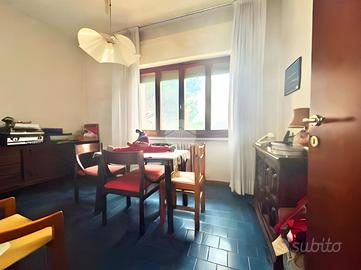 Porzione di bifamiliare posta al primo ed ultimo piano, con ingresso indipendente, di una villa costruita alla fine degli anni '60, articolata in due unità complessive (al piano terra vi è un altro appartamento indipendente con giardino) e completata da un'area garage.