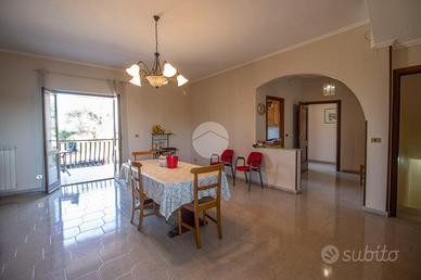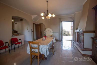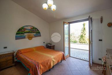 Si accede al piano terra attraverso un ampio portico d'ingresso e lì troviamo: un grande soggiorno con camino e terrazzo panoramico, una cucina, una grande camera da letto con balcone ed un bagno con doccia.