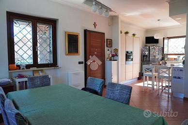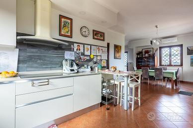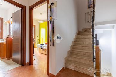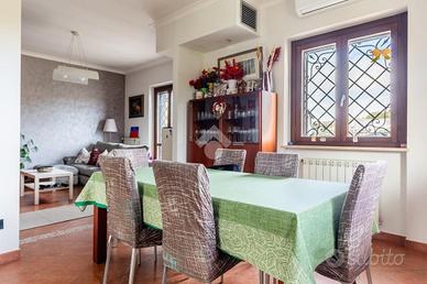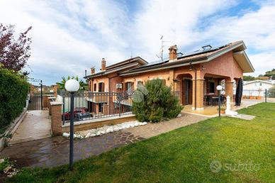 Nella zona residenziale più rinomata di Colonna, vi proponiamo la vendita di una splendida porzione di bifamiliare disposta su tre livelli, curata in ogni dettaglio e dotata di tutti i comfort moderni. La villa, luminosa e ben distribuita, rappresenta la soluzione ideale per chi desidera vivere in un contesto riservato senza rinunciare alla comodità e alla tecnologia. L'abitazione è dotata di un impianto fotovoltaico da 10 kW con batterie di accumulo da 30 kW, caldaia a doppia condensazione e pompa di calore Daikin collegata ai termosifoni oltre ad una termostufa integrata nell'impianto di riscaldamento; qui troviamo tutte le utenze dirette ed autonome! L'immobile offre inoltre un comfort climatico ottimale grazie ai condizionatori presenti in tutte le camere e nel salone, mentre la sicurezza è garantita da un sistema di allarme, videosorveglianza e grate presenti ad ogni finestra. La proprietà inoltre è servita da fibra ottica e videocitofono.