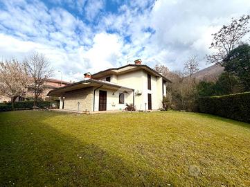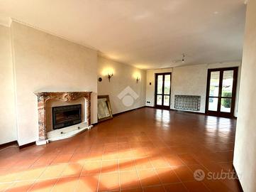 Il piano terra accoglie un ampio e luminoso soggiorno con camino, caratterizzato da doppia esposizione e affaccio diretto sul giardino privato e sul portico, creando un ambiente caldo e accogliente. La cucina separata ed abitabile risulta funzionale e ideale per la vita quotidiana.