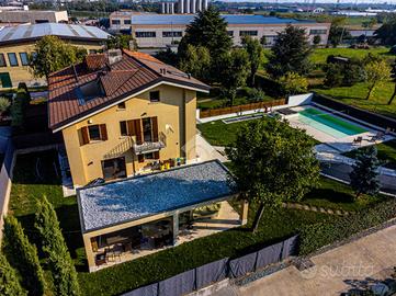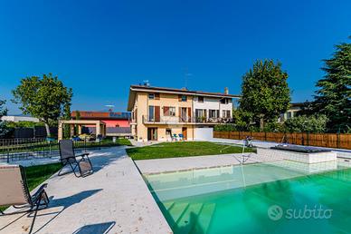 COSTA DI MEZZATE In prima periferia, immersa nella campagna proponiamo questa soluzione di cascinale interamente ristrutturato nel 2012, con una stupenda piscina esterna di circa 50 mq con tanto di Jacuzzi vasca idromassaggio. L'abitazione ha naturalmente un ingresso indipendente con scivolo carraio e pedonale, un ampio giardino di circa 800 mq, con un pergolato invidiabile di circa 50 mq in muratura. Si sviluppa al piano terra dove troviamo un locale disimpegno all'ingresso, la cucina abitabile e un salone, il tutto servito da un comodo bagno. Al primo piano si trovano ben quattro camere e due bagni. Al piano secondo mansardato si trova una vera e propria SPA con vasca idromassaggio, sauna e bagno turco, oltre che ad un bagno e un terrazzo a tasca non visibile dall'esterno. Al piano interrato troviamo un autorimessa di circa 110 mq, oltre a vano tecnico, cantina, lavanderia e locali tecnici piscina. Le finiture sono veramente di pregio. L'indirizzo è puramente indicativo. Ogni agenzia è autonoma ed ha un proprio titolare.