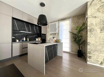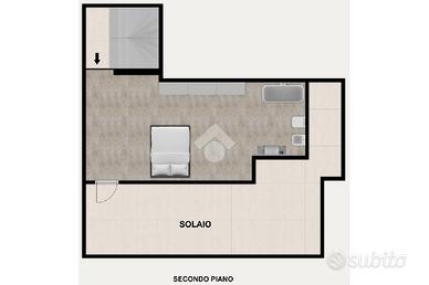Dall'ingresso al piano terra accediamo alla zona giorno openspace composta da soggiorno, cucina con isola a vista e bagno di servizio finestrato.