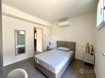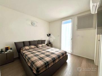 Percorrendo la scala interna raggiungiamo il primo piano composto da una camera matrimoniale con bagno privato entrambi con accesso ai balconi e la cabina armadio, una seconda camera matrimoniale e un bagno finestrato con doccia che serve la zona notte.