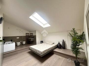 Proseguendo al piano secondo ci accoglie la camera degli ospiti openspace con bagno en suite.