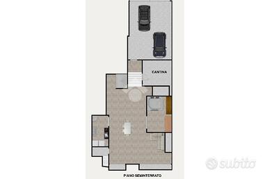 Completano la soluzione un box auto di 30 mq con basculante automatica e una cantina con accesso diretto all'immobile.