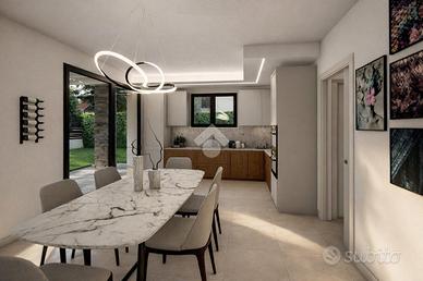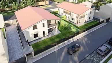 Villa di Nuova Costruzione in "Residenza Luna" - Consegna Aprile 2027 VILLA 'A' All'interno dell'esclusivo complesso residenziale "Residenza Luna", proponiamo in vendita una splendida villa di nuova costruzione, progettata secondo i più moderni standard abitativi. La soluzione si distingue per design contemporaneo, elevata efficienza energetica e grande attenzione al comfort abitativo. Gli spazi sono studiati per offrire luminosità, funzionalità e vivibilità, ideali per chi desidera un'abitazione elegante e sostenibile. Caratteristiche principali: * Ampia zona living con cucina a vista impreziosita dall'accesso sul giardinp privato * 3 camere da letto (di cui una con possibilità di realizzazione della cabina armadio) * Doppi servizi finestrati * Studio * Locale tecnico * Terrazzi a servizio di ogni camera * Giardino privato su due lati * Box auto privato * Possibilità di personalizzazione delle finiture interneL'immobile sarà realizzato con tecnologie costruttive all'avanguardia, tra cui: * Classe energetica prevista A/4 * Impianto fotovoltaico * Pareti perimetrali con blocco cassero legno/cemento ISOTEX con inserto isolante Neopor * Pompa di calore con serbatoio d'accumulo di acqua da 300 litri. * Vmc puntuale in ogni locale * Riscaldamento a pavimento * Serramenti ad alte prestazioni * Predisposizione aria condizionata in ogni locale * Predisposizione zanzariere * Predisposizione impianto d'allarmeLa "Residenza Luna" nasce in un contesto tranquillo e riservato, ma comodo con tutti i principali servizi, scuole e collegamenti. Soluzione ideale per chi cerca qualità, innovazione e indipendenza abitativa. Per maggiori informazioni, planimetrie e dettagli sulle personalizzazioni disponibili, non esitare a contattarci.