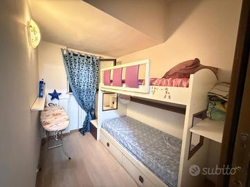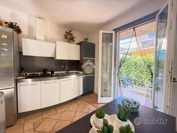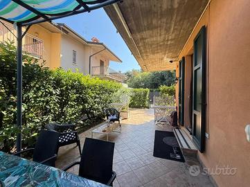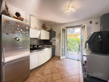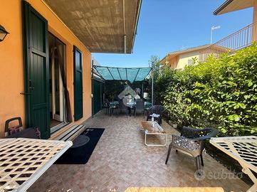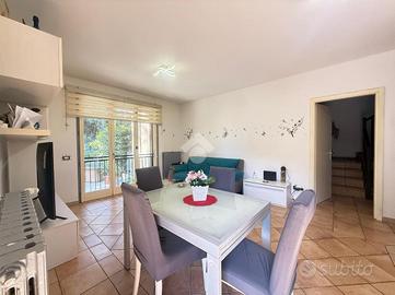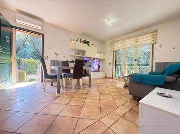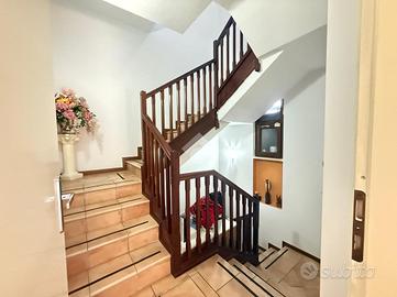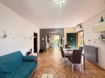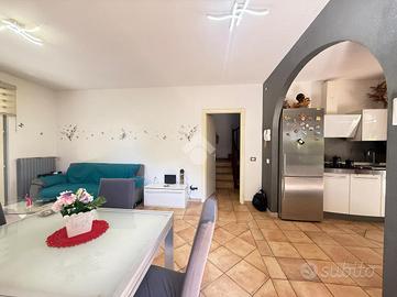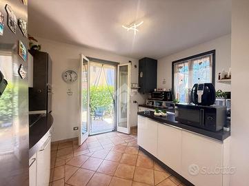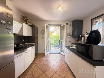 In recente contesto di abitazioni indipendenti, porzione di villa bifamigliare disposta su più livelli e dotata di grande giardino privato disposto sui tre lati dell' immobile. L' abitazione ospita, al piano terreno, la zona giorno in cui trovano spazio la cucina abitabile con sfogo sul giardino e l' ampia zona living. Al piano primo si trovano le due camere matrimoniali, il primo bagno finestrato con doccia idromassaggio ed il comodo ripostiglio. Al piano secondo si trova il locale sottotetto utilizzabile come area di deposito. Le scale interne conducono poi al locale seminterrato in cui è presente la grande taverna con camino, un ripostiglio, un bagno/ lavanderia e due locali attualmente adibiti a camere. Grande giardino di proprietà molto curato e piantumato. L' immobile dispone di cappotto per isolamento termico, di caldaia a condensazione e climatizzatori nei tre piani dell' abitazione.