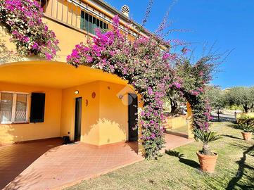 La casa è disposta su un unico livello, piano terra con ampio porticato e giardino attrezzato con zon barbecue.