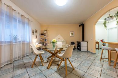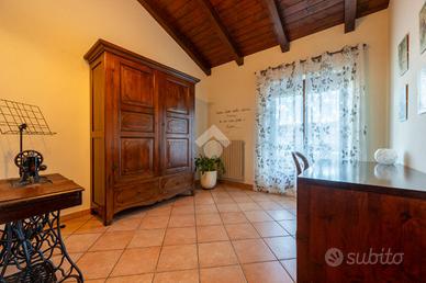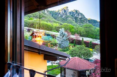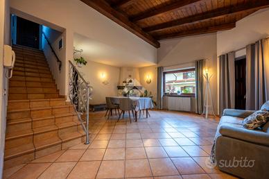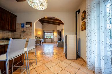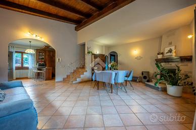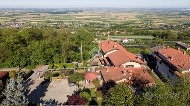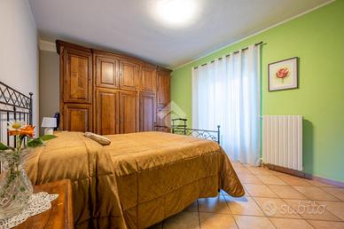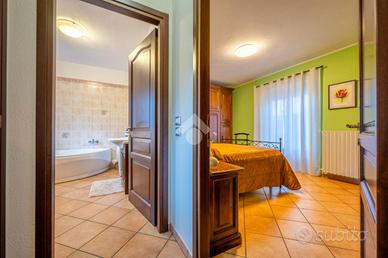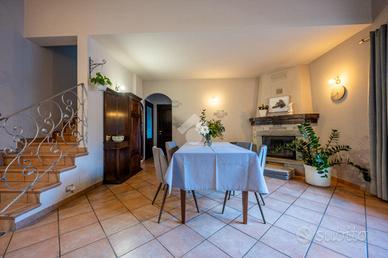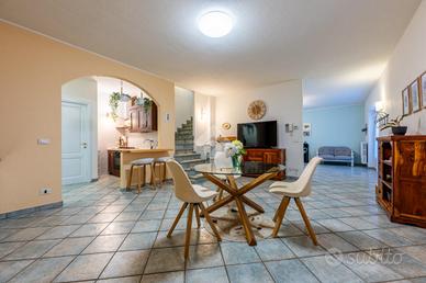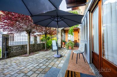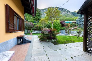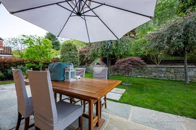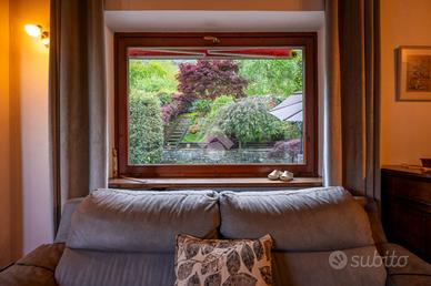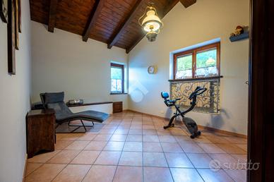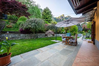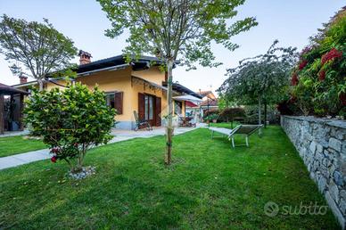 ENVIE in Via Caporgno, zona tranquilla e ben esposta al sole, villa libera su tre lati di recente costruzione con ampio giardino privato. La proprietà si eleva su tre livelli collegati tra loro da scala interna. Il piano terra si compone di uno spazioso e luminoso soggiorno, caratterizzato da soffitto in travi a vista in legno, cucina abitabile, una camera da letto matrimoniale e un primo bagno finestrato dotato di vasca. Tutti gli ambienti hanno sfogo esterno su giardino o terrazzo. Al secondo piano sono presenti due camere da letto matrimoniali e un secondo bagno con doccia. Una delle due stanze ha uscita esterna sul balcone da cui si può godere di una vista panoramica sulla pianura circostante. A completare la proprietà è situata al piano semi interrato la tavernetta completa di angolo cottura, un bagno con doccia e una camera da letto. Esternamente l'immobile presenta finiture di pregio come pavimentazione in pietra di Luserna e nel giardino muretti in pietra.