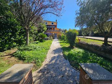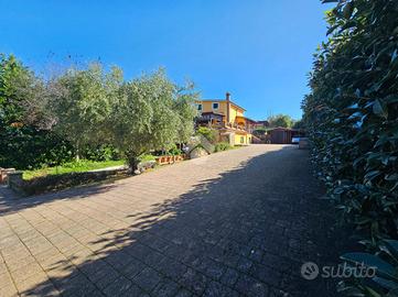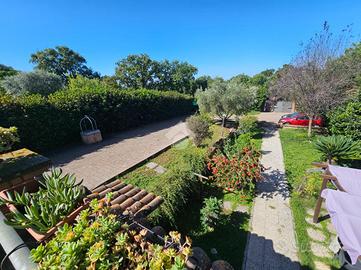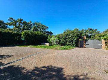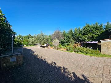 Gli esterni sono caratterizzati da una zona antistante completamente pavimentata con casetta in legno 3x3mt per deposito attrezzi e portico attiguo per copertura auto, pozzo privato, illuminazione, impianto di irrigazione e fossa biologica con fitodepurazione.