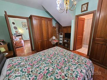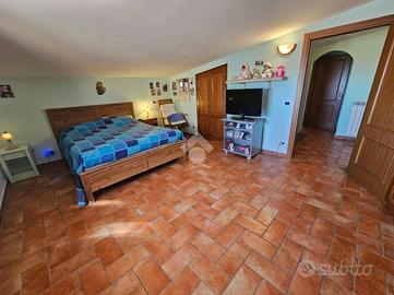 Accedendo dal piano terra, troviamo la seconda unità abitativa composta da soggiorno-pranzo con camino, cucinotto e camera matrimoniale con bagno privato. Percorrendo una comoda scala interna, si accede al piano superiore con un comodo disimpegno, un'ampia camera matrimoniale, una cameretta e un bagno con doccia.