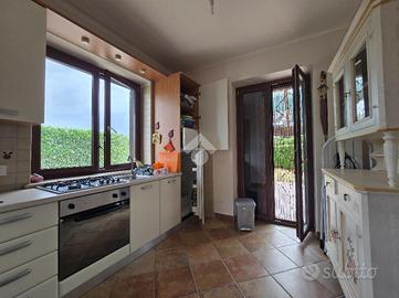 Al piano terra un accogliente soggiorno con camino crea un'atmosfera calda ed intima, perfetta per le serate in compagnia; la cucina è funzionale e ben collegata agli altri ambienti; il bagno, finestrato , è molto comdo con doccia.