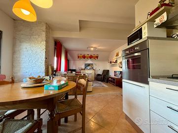 Il piano abitabile, posto al primo piano, accoglie una luminosa zona giorno con soggiorno e cucina, due camere da letto, due bagni e un secondo soggiorno, ideale come spazio relax, studio o area polifunzionale.