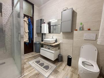 si sviluppa al piano primo e si compone di due ampie camere da letto matrimoniali, 1 camera da letto singola, una cucina,un soggiorno, un bagno e un antibagno.
