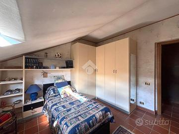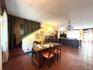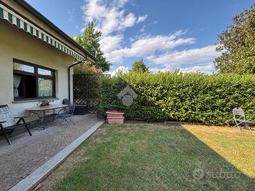 Davanti alle scuole, porzione di bifamiliare immersa in un maestoso e curatissimo parco condomiliale, completamente recintato ed ideale per chi cerca la tranquillità ed il verde pur non rinunciando alle comodità del paese. Disposta su due livelli abitativi offre al piano terra un'ampia zona giorno composta da sala da pranzo e soggiorno con camino, perfetta per accogliere tutta la famiglia e gli amici. La cucina abitabile, il bagno e un'ampia camera concludono il primo piano abitativo. Al piano superiore un ampio locale utilizzato come studio e biblioteca con l'uscita sul terrazzino ed altre due ampie camere, oltre al secondo bagno, garantiscono spazio sufficiente per tutta la famiglia. Al piano seminterrato la tavernetta ideale per essere utilizzata durante le feste in tutte le stagioni, la cantina, il locale caldaia, la lavanderia ed il box auto doppio. Completa la proprietà il giardino privato che dona un ulteriore spazio esterno, per momenti di relax all'aperto.