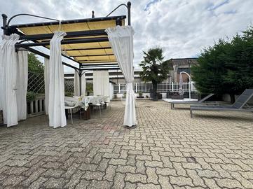 GALLIATE - Appartamento in Villa Bifamiliare con Taverna, Ampio Cortile Privato, Box e Posti Auto In contesto tranquillo proponiamo in vendita appartamento in villa bifamiliare con ingresso semi indipendente, situato al secondo piano e completo di taverna al piano seminterrato. L'immobile gode di ottima luminosità. La proprietà si compone di tre locali, tra cui due camere da letto e una terza stanza versatile, ideale per un ufficio o una sala hobby. Sono presenti due bagni, di cui uno nella camera matrimoniale, un terrazzo e una taverna che offre ulteriore spazio per momenti di relax o convivialità. L'appartamento è dotato di aria condizionata, assicurando un ambiente confortevole in ogni stagione. All'esterno troviamo un ampio cortile privato, perfetto per pranzi all'aperto o per chi desidera spazio per animali domestici o bambini. E' presente un forno a legna in muratura per le pizze. Completano la proprietà un box auto e tre posti auto, offrendo comodità e sicurezza per tutta la famiglia. Questa soluzione abitativa rappresenta un'opportunità unica per chi desidera vivere in un contesto tranquillo e riservato.