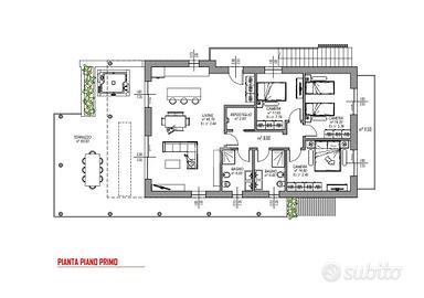 La porzione al piano terra vanterà la parte più ampia di giardino privato di circa 400 mq con portico e vasca idromassaggio. Internamente troveremo una zona living di 36 mq, 2 camere da letto, 2 bagni con finestra e ripostiglio.