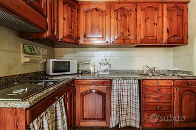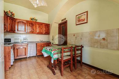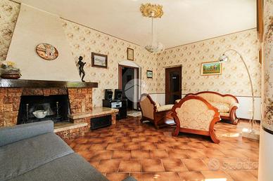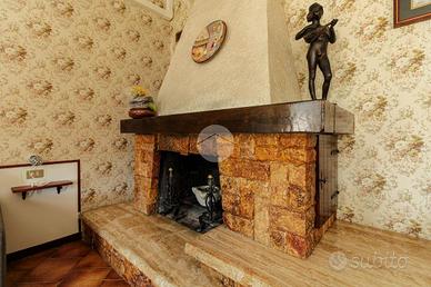 Al piano terra si può accedere attraverso due ingressi, quello principali ci porta in una funzionale cucina con camino, proseguendo troviamo un ampio disimpegno usufruibile come zona fitness, un bagno con doccia, due stanze utilizzabili come magazzino ed un ampio soggiorno in stile classico con camino in pietra ed ampie finestre che affacciano sul giardino di proprietà.
