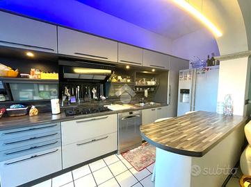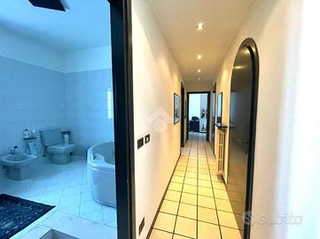 Una porta ci accompagna nella zona notte composta da un primo corridoio con camera matrimoniale, due camerette collegate tra loro da un balcone e il primo bagno con vasca idromassaggio. Un secondo bagno con box doccia e un vano caldaia posti su un secondo corridoio, rifiniscono la parte abitativa.