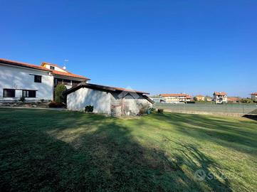 L'abitazione è posta al piano terra, su un'area in comproprietà di circa 2250 mq e con un pezzo di giardino disposto sui due lati dell'immobile ad uso esclusivo.