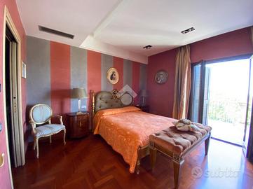 All'esterno, la villa è circondata da un bel giardino privato, curato e articolato tra aree verdi e zone pavimentate. Portici, terrazze panoramiche e un gazebo in ferro battuto creano un'atmosfera suggestiva, arricchita dalla presenza di un forno e un barbecue, ideali per momenti di convivialità con amici e famiglia. La vista è semplicemente straordinaria: lo sguardo si perde fino al mare e alle isole Pontine, regalando scorci unici in ogni stagione.
