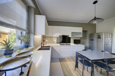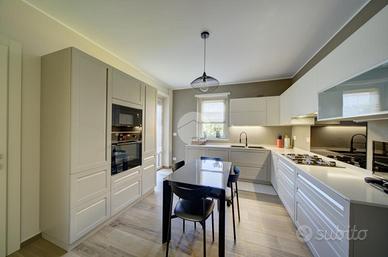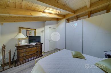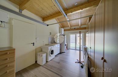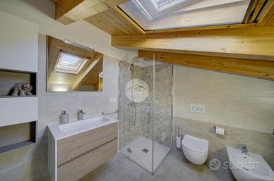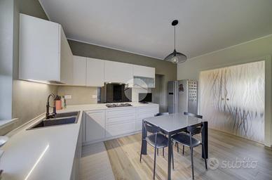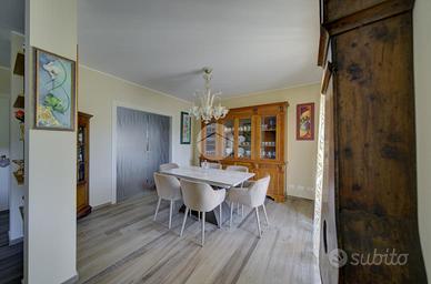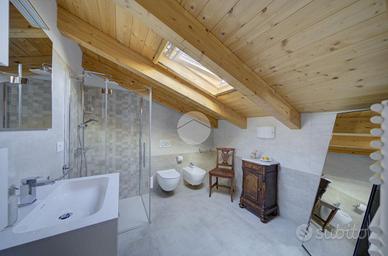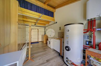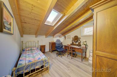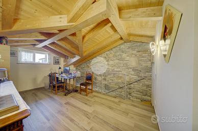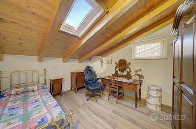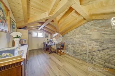 Situata in un incantevole contesto di Via Coazze, questa moderna villa edificata nel 2020 si sviluppa su due livelli, offrendo uno stile di vita confortevole e contemporaneo. L'accesso al centro del Paese è facilitato da un ampio viale alberato, che permette di raggiungere le varie comodità locali con una piacevole passeggiata. Al piano terreno, ci accoglie un luminoso salone che si integra perfettamente con una cucina abitabile, creando uno spazio ideale per la vita quotidiana. La generosa sala da pranzo è il cuore della casa, pensata per ospitare momenti conviviali in famiglia e con amici, (la soluzione originale nasce con una prima camera da letto matrimoniale), completata da un elegante bagno. Sempre al piano terreno, troviamo un box auto con basculante motorizzato, una parte del quale è stata trasformato in una funzionale lavanderia. La zona notte, situata al piano mansardato, offre un'atmosfera accogliente grazie al tetto a vista in legno lamellare. Questa area è composta da un ampio studio e due camere da letto, tutte servite da un bagno. Un elemento di design che caratterizza la casa è la scala poggiata su una parete in pietra, che non solo collega i due piani, ma ne arricchisce l'estetica con rifiniture ricercate. La villa è circondata da due giardini ben curati: il giardino frontale, pensato per essere decorativo, e quello adiacente alla cucina, perfetto per momenti di relax e convivialità all'aperto. Dal punto di vista energetico, la proprietà, in classe A4, è dotata di riscaldamento a pavimento, un impianto fotovoltaico da 4 kW e pompa di calore con accumulo di 370 litri di acqua, garantendo costi contenuti e un rimborso annuale da Enel. Tra le caratteristiche tecniche, la casa è arricchita da tapparelle motorizzate, zanzariere, velux elettrici dotati di zanzariere, telecamere esterne e predisposizione per i condizionatori. Infine, oltre al box auto, la villa dispone di due posti auto privati, di cui uno coperto, offrendo così ulteriore comodità.