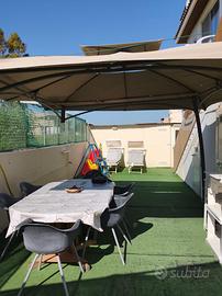 In zona riservata e tranquilla proponiamo in vendita soluzione indipendente al primo piano con ampia zona scoperta al piano terra adibita a posto auto, area solarium, zona giochi, zona pranzo con gazebo, barbeque, bagno con doccia e piccolo ripostiglio. Al primo piano con accesso da scalinata autonoma troviamo ampia veranda di 60 mq ca. chiusa da vetrate scorrevoli e moderna abitazione completamente arredata composta da ingresso in soggiorno - pranzo, due camere da letto, bagno e angolo cottura. L'immobile ottimamente rifinito è fornito di condizionatori, zanzariere, infissi vetrocamera e porta blindata. Per ulteriori informazioni potete contattarci o raggiungerci presso la nostra agenzia affiliata di Santeramo, via Roma che è presente sul territorio locale e garantisce ai suoi clienti professionalità e qualità dei servizi. Il nostro staff altamente professionale è tutti i giorni a vostra completa disposizione per accogliervi e soddisfare le vostre esigenze immobiliari.