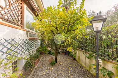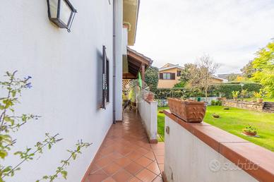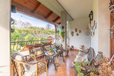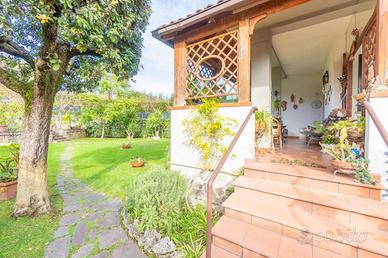 Piano terra: ingresso, salone doppio con camino, cucina e bagno finestrato con doccia. Giardino semiperimetrale con portico, zona relax e veranda.