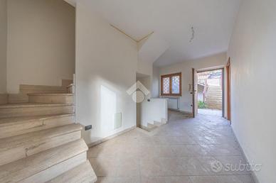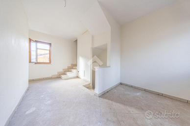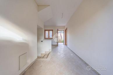 Proponiamo in vendita una porzione di bifamiliare costruzione 2006 mai abitata, che si sviluppa su tre livelli per circa 110 mq e beneficia di un comodo doppio accesso carrabile e pedonale, un dettaglio che ne aumenta la versatilità e la possibilità di suddivisione. Varcato l'ingresso, un ampio giardino accoglie l'abitazione e introduce a un ambiente interno luminoso, dove un saloncino/disimpegno anticipa la camera matrimoniale con affaccio diretto sul verde, uno spazio che regala un senso immediato di tranquillità. Completano questo livello un bagno finestrato, funzionale e ben disposto.