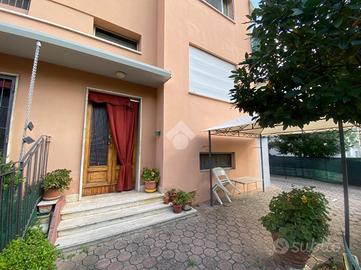 QUARTIERE CAPPUCCINI: In posizione silenziosa, proponiamo porzione di bifamiliare indipendente su tre lati con area cortiliva privata di circa mq 200. L'immobile è al momento già suddiviso in due unità abitative autonome, (una al primo piano e una al secondo piano) in modo da poter soddisfare le esigenze di due nuclei famigliari genitori/figli. Un appartamento è composto da ingresso, cucina abitabile, sala, camera, bagno e ripostiglio finestrato. L'altro è composto da cucina abitabile, due camere, bagno e salottino mansardato. Al piano terra, sono presenti dei locali accessori, utilizzati a lavanderia, garage, bagno e camera. Entrambi gli appartamenti sono stati ristrutturati a partire dagli anni 90, intervenendo sulle finiture e gli impianti. Gli interventi si sono poi susseguiti nel 2017 e nel 2020, con la sostituzione di infissi.