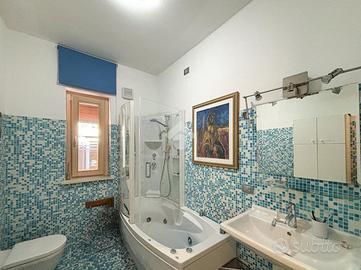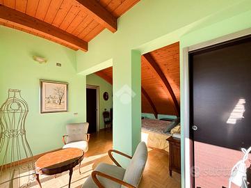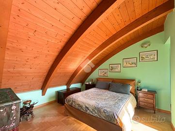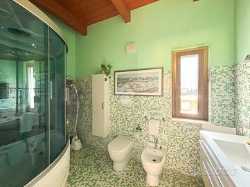 Al secondo e ultimo piano trova spazio la camera padronale con cabina armadio e il proprio bagno, anch'esso con vasca doccia idromassaggio e finestrato. La camera inoltre gode di un balcone panoramico privato.