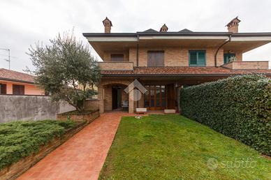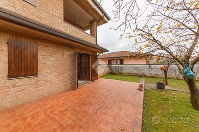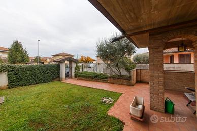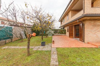 La porzione è composta da 275mq, oltre area esterna piastrellata di 27mq e area verde di 130mq, suddivisa sulla parte anteriore e posteriore del fabbricato.