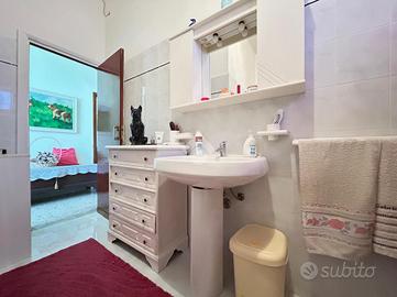 Al piano superiore si trova la zona notte, composta da due camere matrimoniali, una cameretta con accesso al balcone, uno studio aggiuntivo e un secondo bagno finestrato; a completare il piano, un ampio terrazzo.