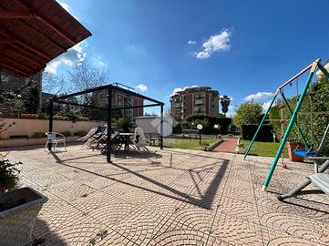 L'immobile è caratterizzato da un ingresso doppio, con due passi carrabili che permettono un accesso comodo e indipendente. Il giardino sul retro è ben attrezzato e parzialmente mattonato, con un gazebo ideale per momenti di relax all'aperto e un'area giochi sicura per bambini.