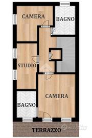 La zona notte, al piano superiore, regala intimità e comfort: una camera matrimoniale con bagno esclusivo e accesso al proprio balcone riservato, una camera singola, uno studio versatile e un secondo bagno.