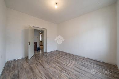 Tramite scala interna si accede alle unità immobiliari composte da due appartamenti: al primo piano troviamo una soluzione da risanare composta da zona giorno in open-Space con accesso diretto al balcone angolare esposto a sud-ovest, due camere matrimoniali, camera doppia, ripostiglio e bagno finestrato dotato di vasca.