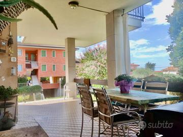 LAZISE - In zona residenziale tranquilla, comoda al servizi e al lago, proponiamo luminoso appartamento al piano rialzato, inserito in contesto di sole due unità abitative. L'immobile offre un ambiente accogliente e funzionale, ideale per chi cerca una soluzione abitativa spaziosa. La zona giorno si compone di soggiorno che si apre sul terrazzo coperto, offrendo spazi esterni dove rilassarsi e godere del clima mite della zona, e di una cucina abitabile; nella zona notte troviamo le tre camere da letto, perfette per ospitare una famiglia. Completano la proprietà un bagno finestrato, un'ulteriore stanzetta finestrata che può essere adibita a secondo bagno e un box auto. Il giardino privato rappresenta un valore aggiunto, ideale per chi ama il verde e desidera uno spazio all'aperto per attività ricreative. Questa soluzione coniuga comodità e tranquillità in una delle località più affascinanti del Lago di Garda.