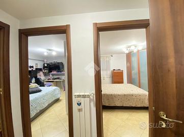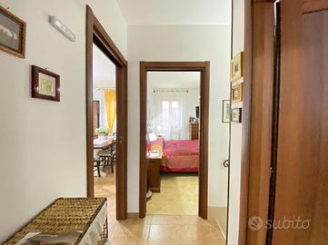 Dalla zona giorno per mezzo di un piccolo disimpegno si accede alla zona notte, composta da una camera matrimoniale, una camera singola e un bagno dotato di cabina doccia idromassaggio.