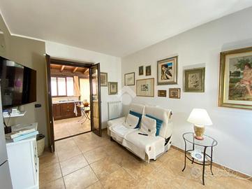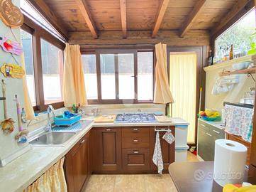 Dall'ampio scoperto antistante, pavimentato di recente e attrezzato con gazebo in legno, si giunge all'ingresso dell'abitazione composta da un ampio soggiorno e da una comoda cucina a vista.