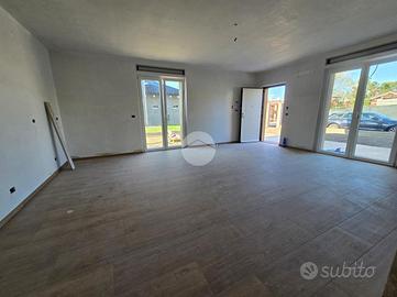 L'abitazione si svilupperà su due livelli. Al piano terra, l'ingresso su accogliente zona giorno living con cucina a vista, pensata per offrire un ambiente ampio e luminoso. Troviamo poi un antibagno/lavanderia con allacci per lavatrice e asciugatrice, un bagno con doccia e finestra, e un comodo garage di 22 mq, collegato direttamente all'interno della casa.